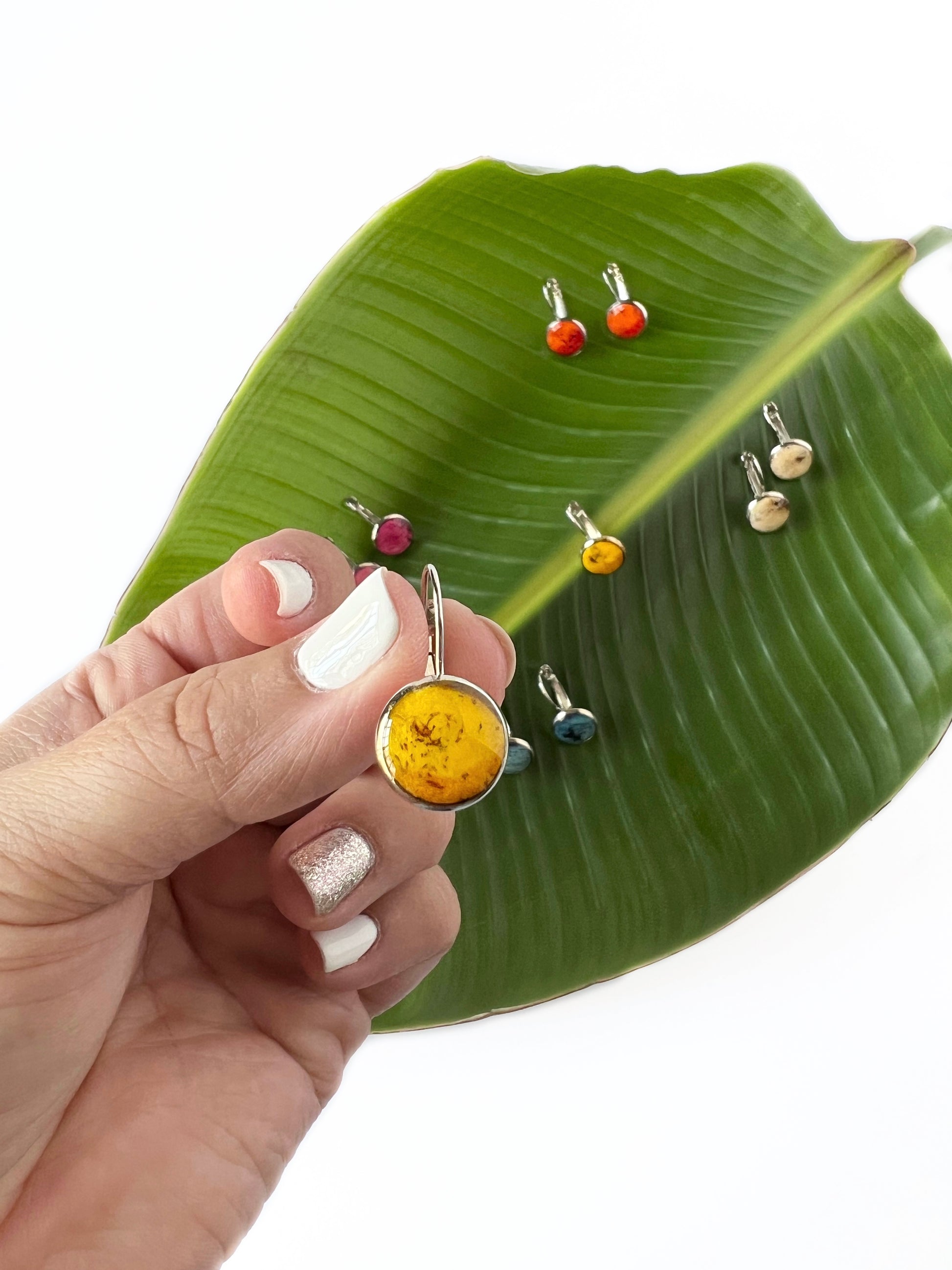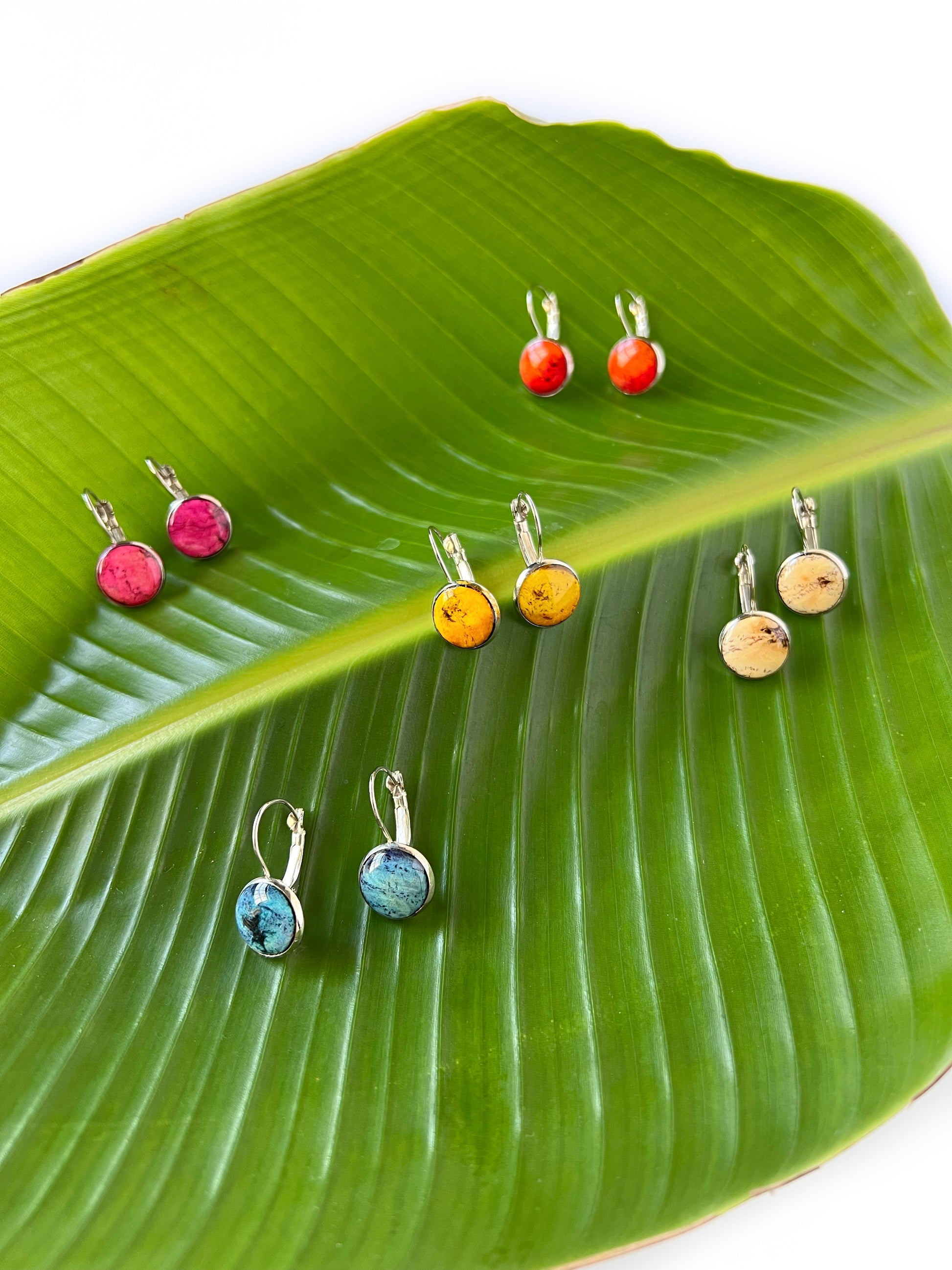 As beautiful and colorful as the Jaragua park, arrive our earrings made with banana pulp and protected in resin. Light, comfortable and specially designed for those special days that leave memorable moments, or for your day to day where you want to shine with your own light.