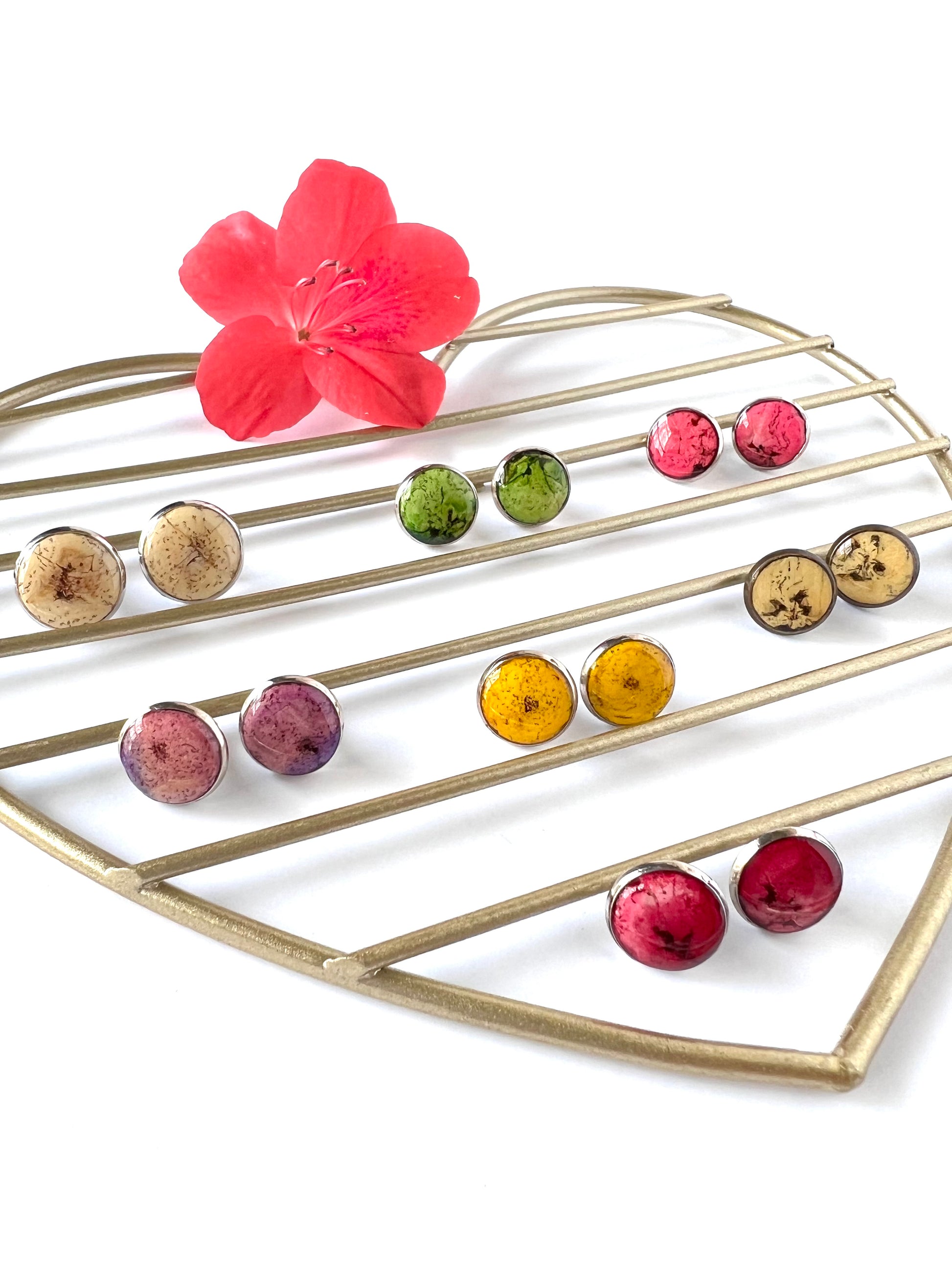 Nassau Earrings made with banana pulp and protected with resin, are one of our basics. You’ll find comfort and a lot of color in them.